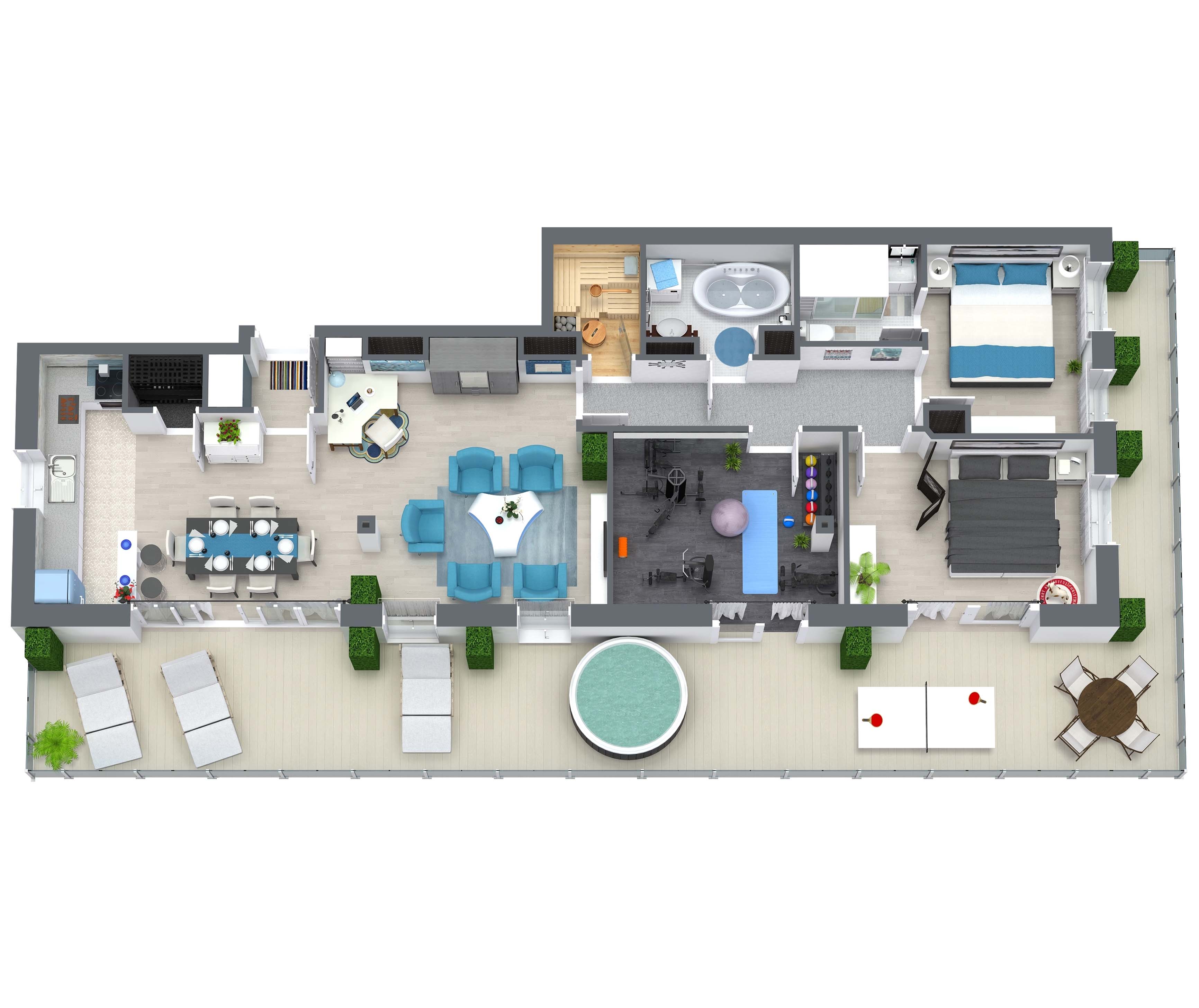 Erkély: 24,57 m2 + Terasz: 23,98 m2